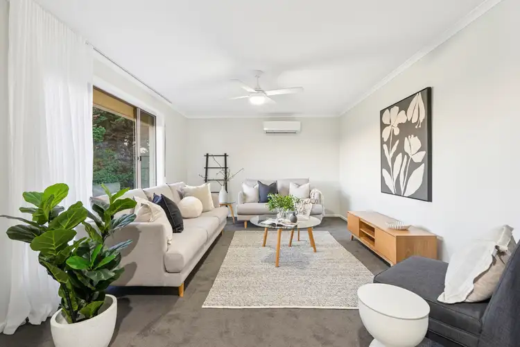 The property features updated kitchen and bathrooms, alongside new flooring and carpet throughout. The open-plan kitchen, dining, and living area sits at the heart of the home, enhanced by a skylight that provides natural light and a comfortable sense of space. The master bedroom includes a walk-in robe and ensuite, and bedrooms two and three both feature built-in robes. Climate control is provided via split-system reverse-cycle air conditioning ,ceiling fans to the second living and all three bedrooms, and a central combustion heater.