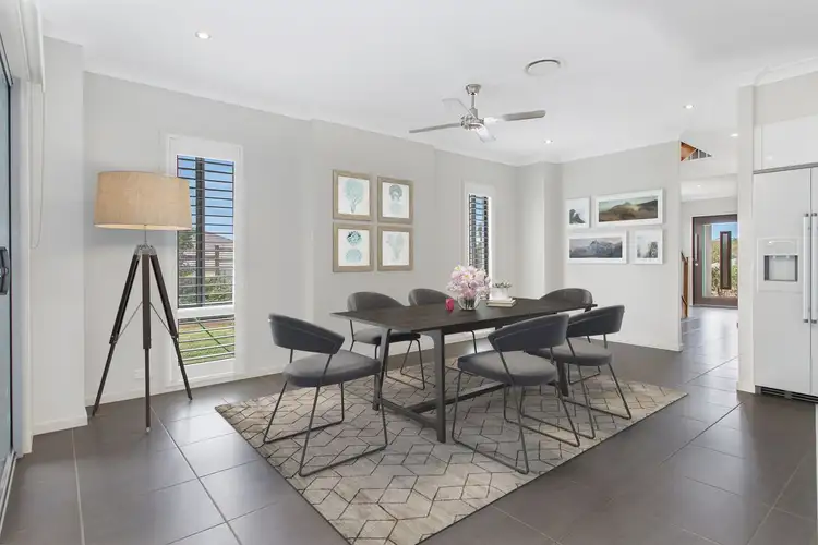 As you walk into the expansive tiled entrance hall, you are greeted with the stylish open timber staircase with recessed wall lights and two landscaped windows that bring in natural light.
