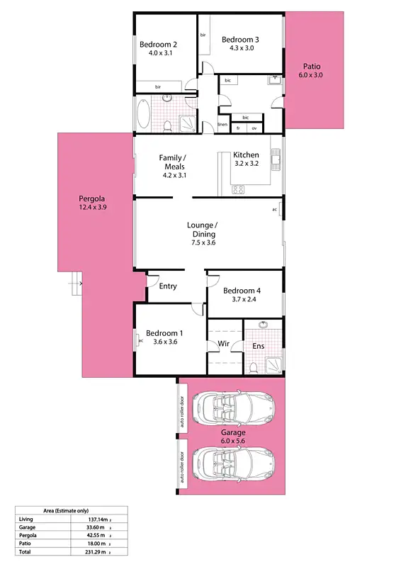 4 Bed • 2 Bath • 2 Car • 1073m²