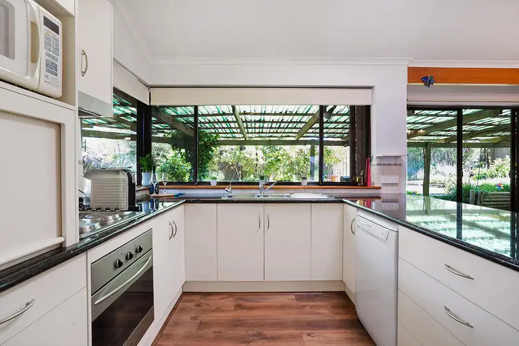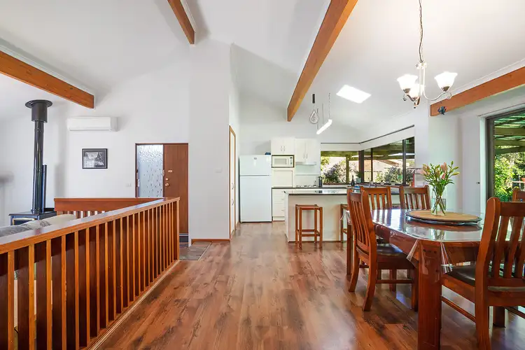 Entering through the front door you're drawn into the large separate lounge boasting tall, raked ceilings with those much loved exposed timber beams and a wood fireplace to keep you warm in the winter. The spacious open plan kitchen and dining area invites plenty of natural light and looks out to the outdoor entertaining area and established green gardens. The kitchen, beautifully updated, features double sink, dishwasher, electric cook top with oven and plenty of bench and cupboard space. The light filled bathroom looks out to the established gardens and has a large shower over the bathtub and toilet.