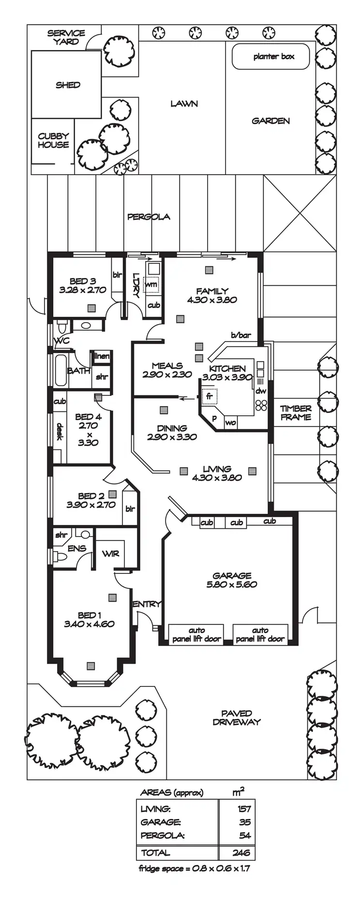 Step outside and entertain family and friends alfresco style with a full width paved pergola providing a sophisticated outdoor living area. Established gardens, trees and planter beds offer a botanic outlook and a natural harmony, enhancing a great low maintenance rear yard. A clever design also provides a cubby house for the kids, a tool shed and service court.