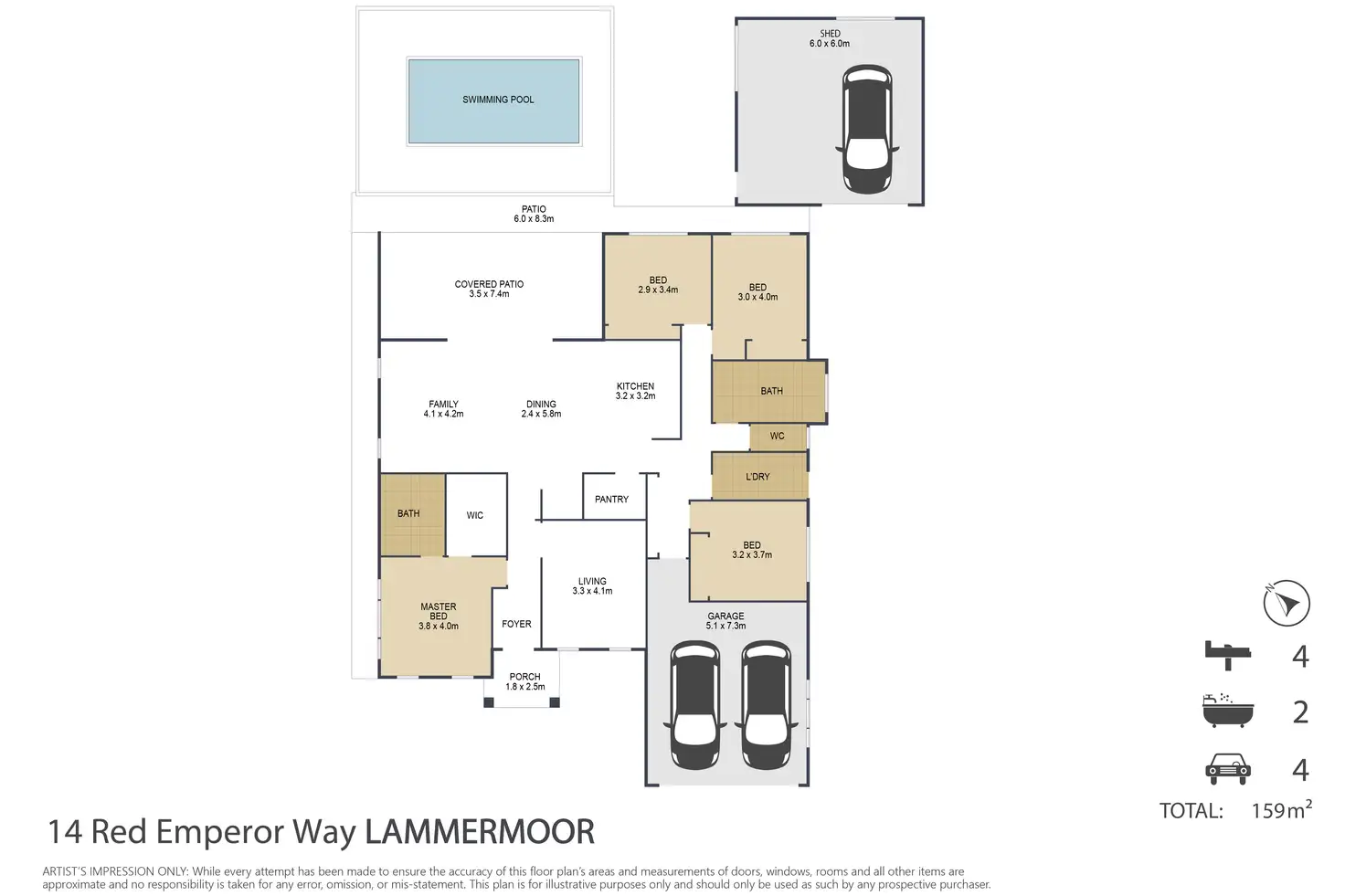 4 Bed • 2 Bath • 2 Car • 720m²
