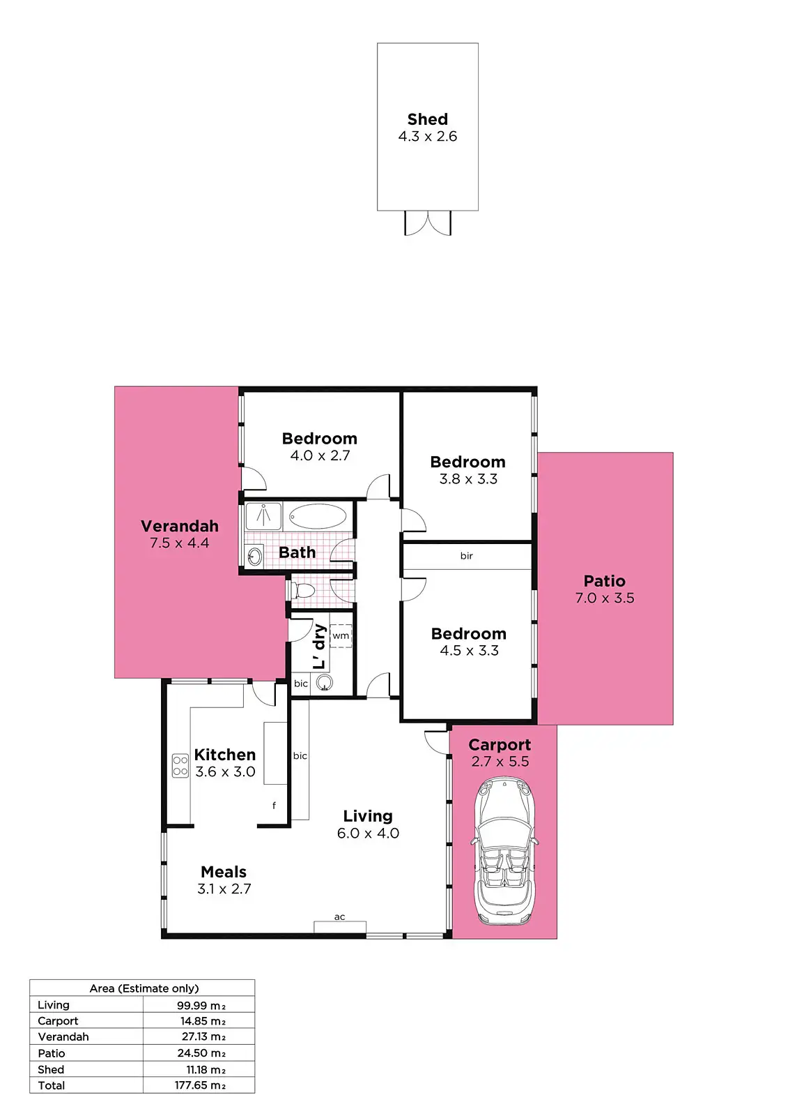 3 Bed • 1 Bath • 1 Car • 658m²