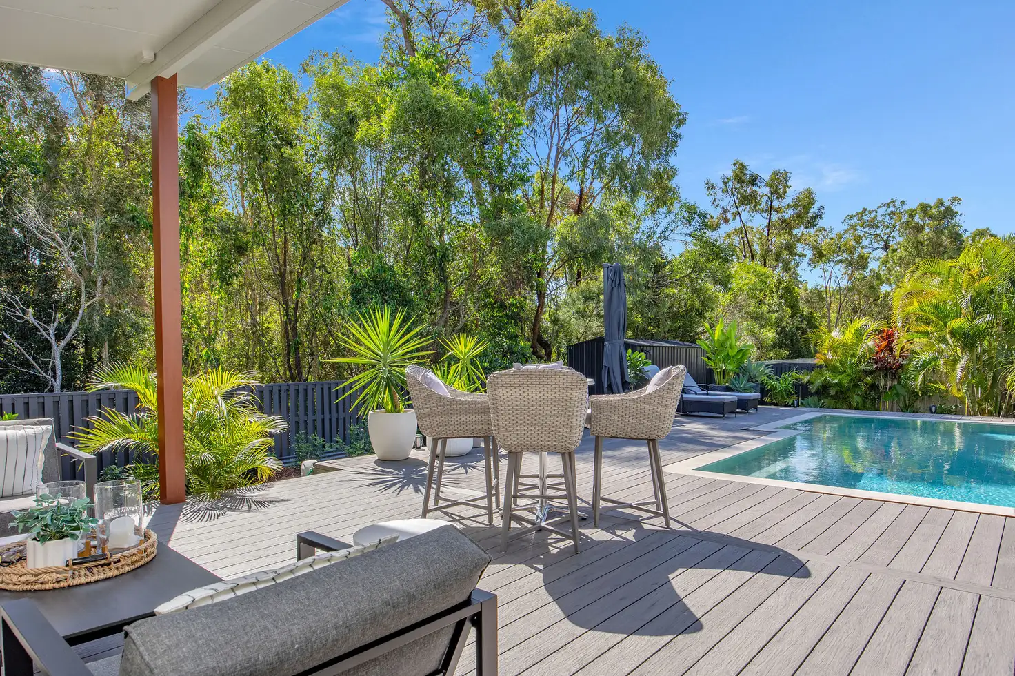 - Sparkling heated in-ground pool with composite decking and poolside lounging zone