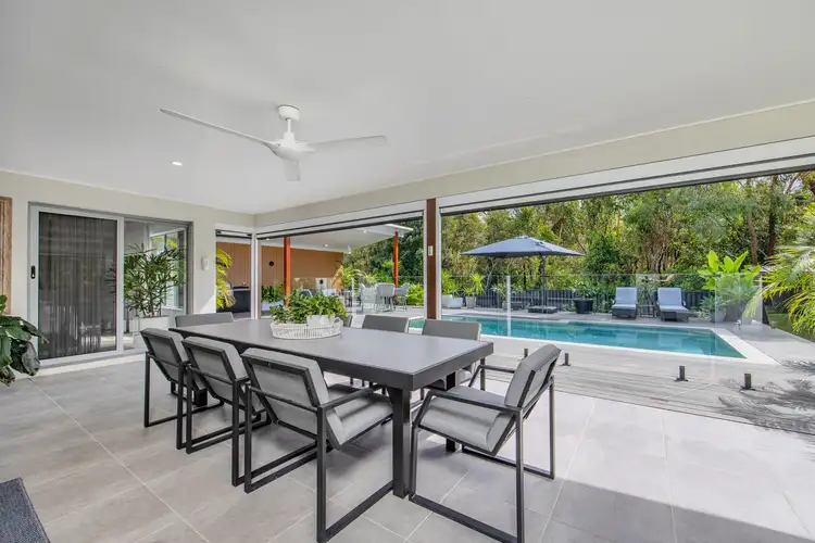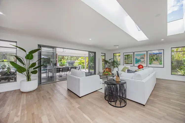 Nestled in the prestigious and peaceful Coomera Waters estate, this modern family home with immaculate low maintenance landscaping, makes a bold first impression. Inside, a flowing layout unfolds across generous living zones, ideal for growing families. The main living space is bathed in natural light, enhanced by dramatic skylights and sleek wood flooring, while an opulent media room provides the perfect retreat for movie nights or quiet downtime.