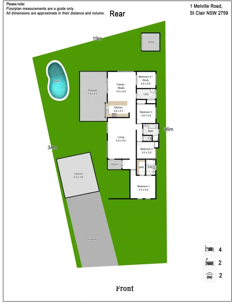 4 Bed • 2 Bath • 2 Car • 626m²