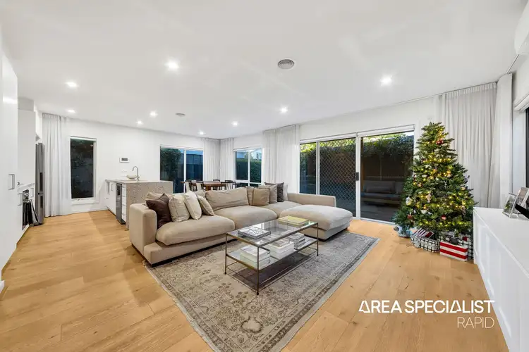 Step inside to a bright and inviting living and dining area thoughtfully designed for everyday comfort while seamlessly accommodating relaxed living and effortless entertaining. The lounge is enhanced by a custom-built entertainment unit stretching from window to window, creating a striking focal point and offering ample storage and display space.