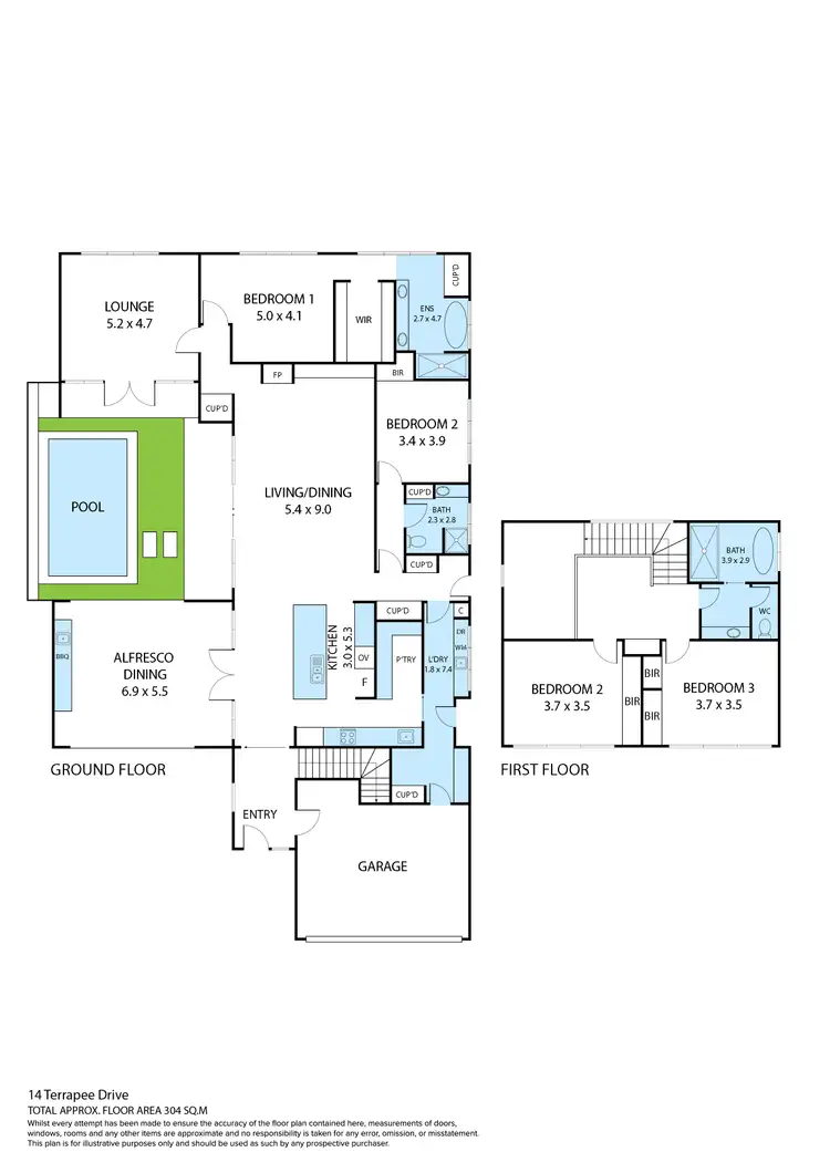 Upstairs in the kids/family wing with two double bedrooms with built-in robes plus their own bathroom.