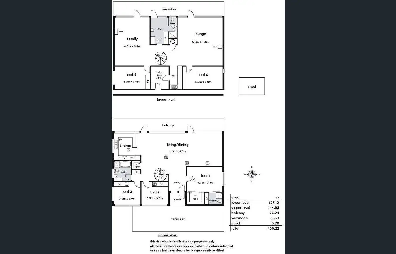 The upper level accommodates the recently upgraded main kitchen & dining rooms. The master bedroom & en-suite, plus two bedrooms, family bathroom & pantry also occupy this space.