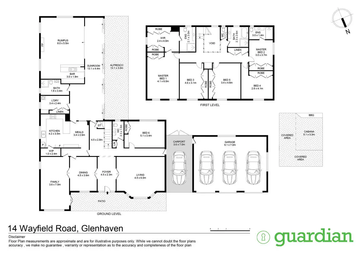 The upper level boasts five well-sized bedrooms, including two master suites. Each bedroom is complete with built-in wardrobes with the primary master suite also enjoying the luxury of a walk-in wardrobe, ensuite and private balcony overlooking the picturesque front garden.