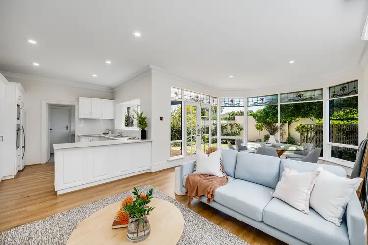 Swooning with charm, this symmetrical cottage meanders across an original frontage providing three bright and airy double bedrooms, including master with walk-in robe and sparkling, updated ensuite. French doors and an intimate courtyard flood the central formal lounge with natural light, while delivering utterly relaxing options to entertain or unwind. Along with a spacious contemporary living and dining headlined by the elegant chef's zone ready to graze and gaze across this delightful open-plan living and dining zone, there's a wonderful free-flow here.