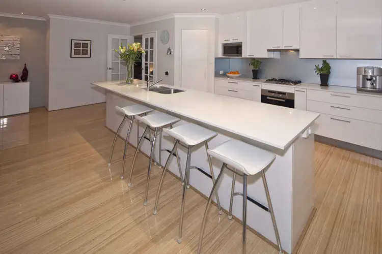 Stunning modern kitchen with Essa stone island bench, Miele appliances and plenty of storage.