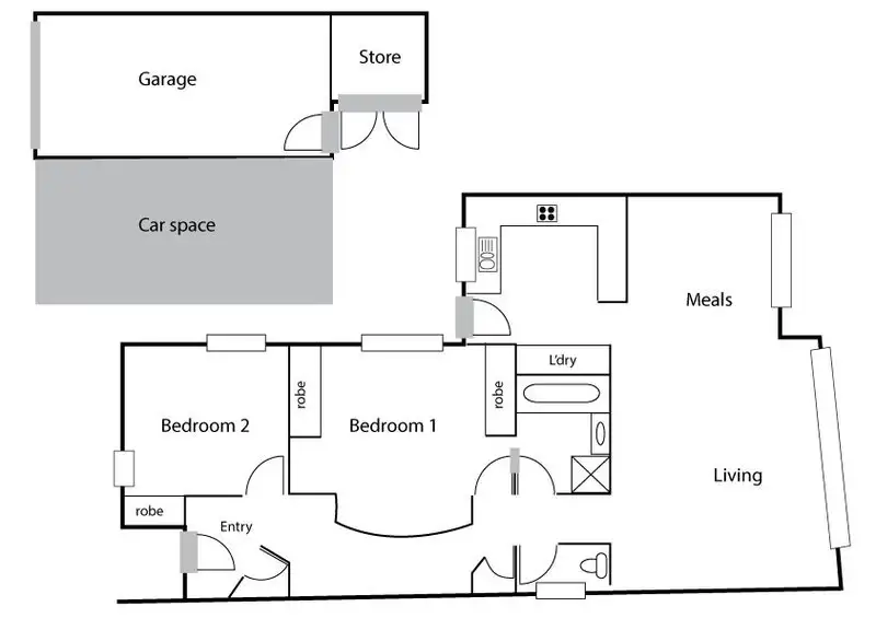 2 Bed • 1 Bath • 2 Car • 336m²