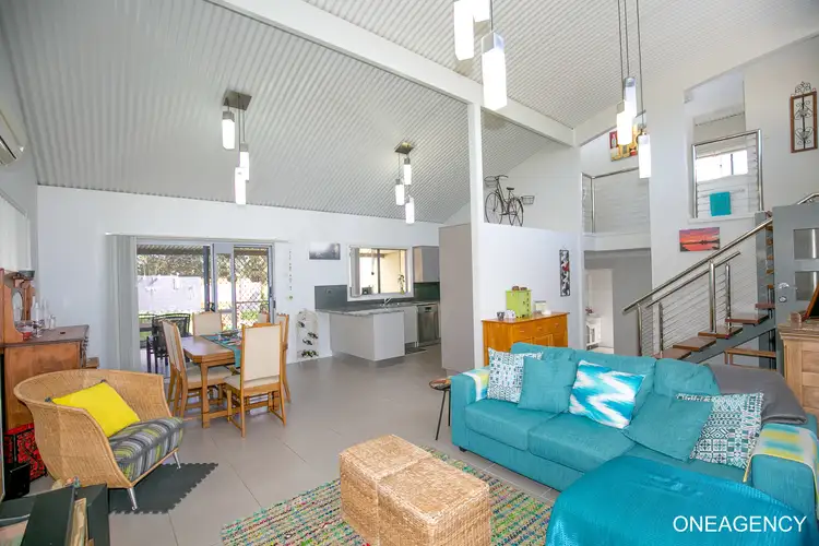 The look of this home is amazing - the lines, the shadow effects, the timber stairs with stainless steel balustrading, the louver windows. It's one big beautiful space to be in.