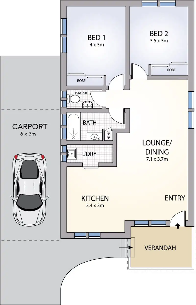 2 Bed • 1 Bath • 1 Car