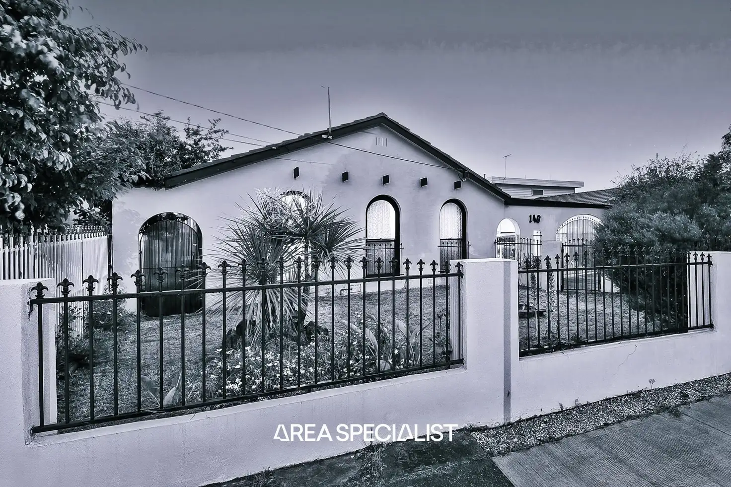 Bordered by a white-rendered brick and iron fence and framed by neat landscaping and a wide paved driveway, this single-storey home is sumptuously presented in a monochromatic palette with Spanish-inspired arched windows, doors and double carport thoroughfare. Secured by a series of access gates and offering off-street parking, this home is wonderfully positioned within a close radius to parks, schools, public transport and a major shopping centre.