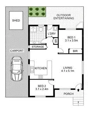 2 Bed • 1 Bath • 2 Car