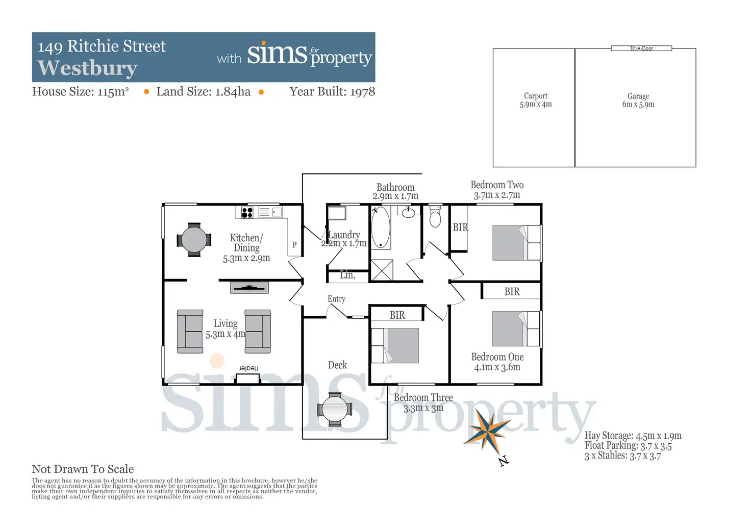 3 Bed • 1 Bath • 3 Car • 18400m²