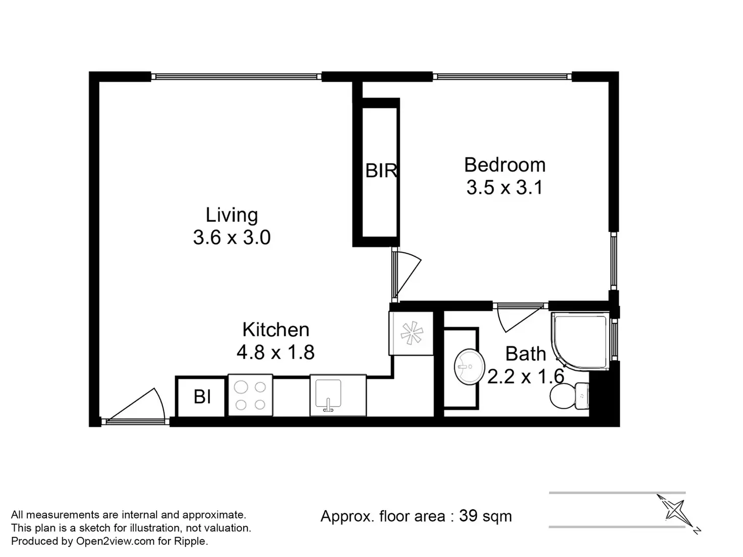 1 Bed • 1 Bath • 1 Car • 39m²