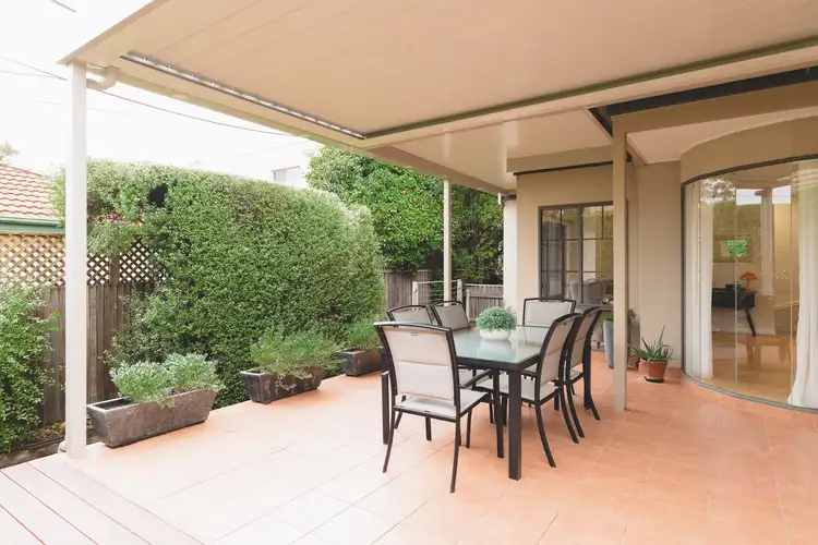 The master bedroom is nicely sequestered to the front of the ground floor, overlooking the terrace, capturing the sunlight that pours through the leafy trees. Soft carpet keeps things cosy and plantation shutters filter the light. There is an elegant ensuite bathroom and a wall of mirrored robes for seamless storage.