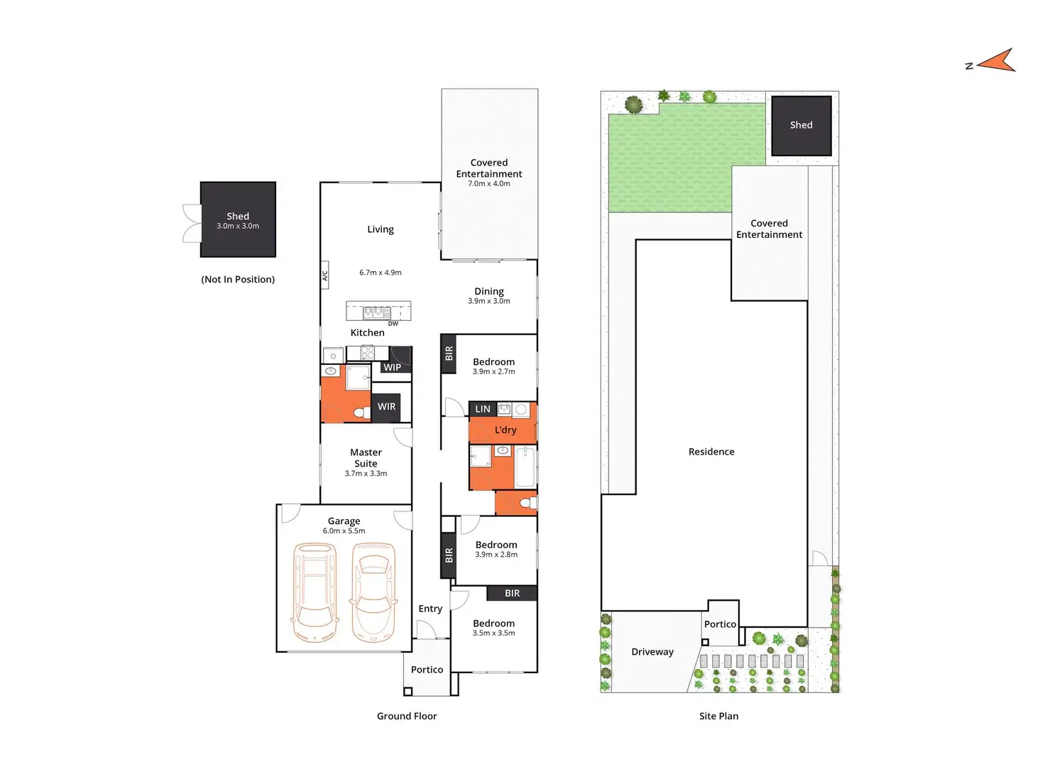 Outdoor: large undercover concrete alfresco, grassed space, storage shed, low maintenance front and back landscaping & side gate.