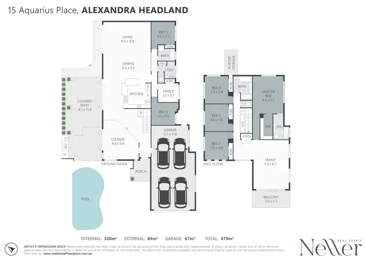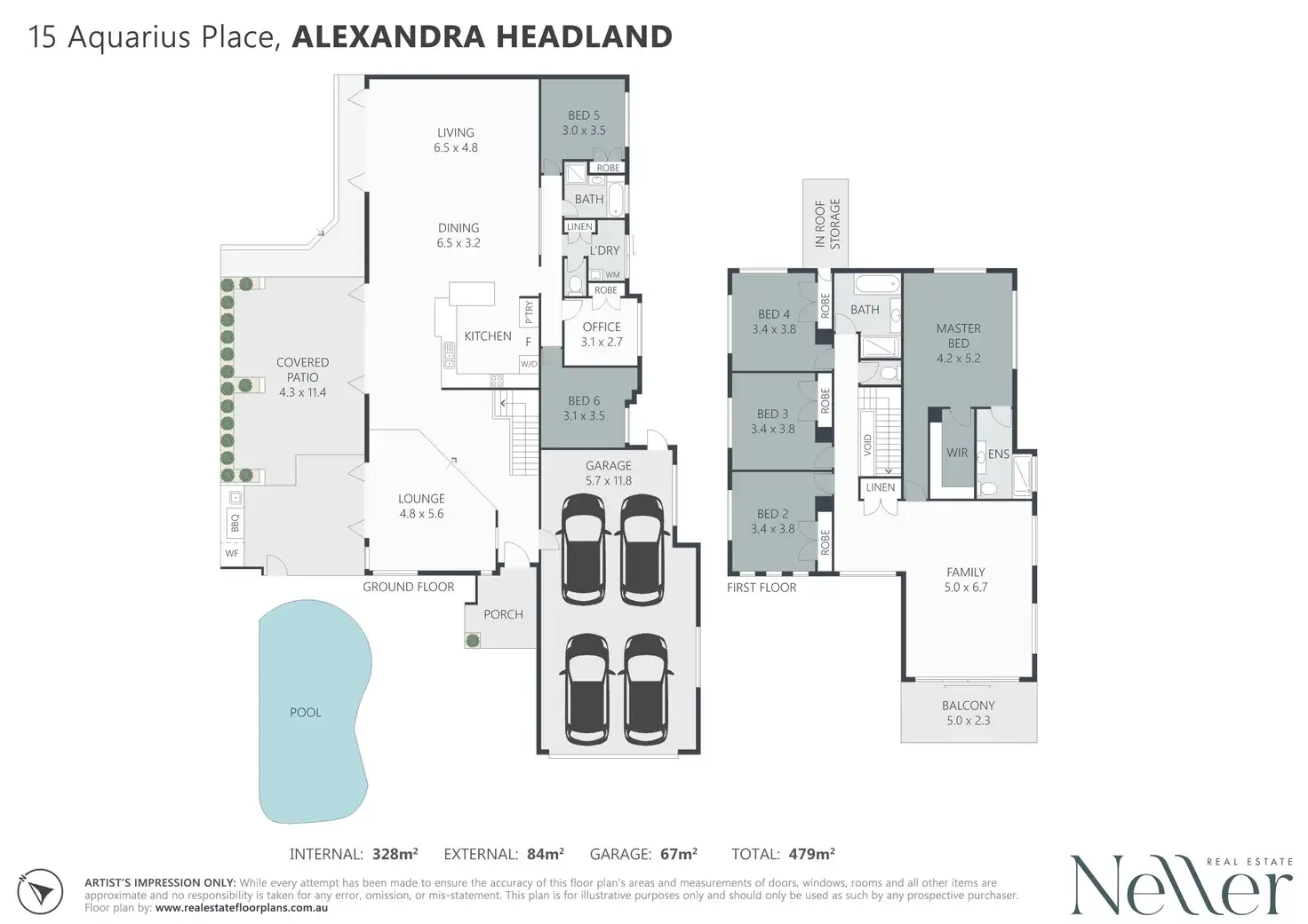 Across two levels with a well-designed floor plan to facilitate functional family-friendly living with good separation as well as wonderful communal space; the home comprises six bedrooms, three bathrooms, office, three separate living areas, quality kitchen, upper balcony, north facing covered terrace with built-in BBQ, separate laundry, and four car garage, on fenced 700m2 block.