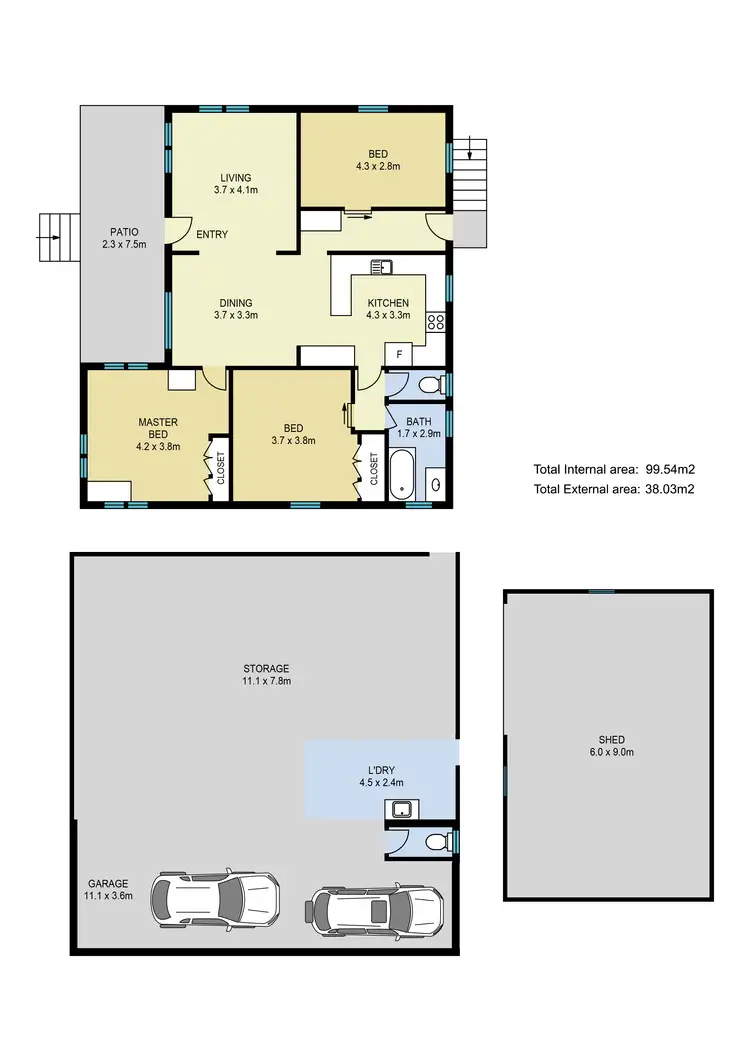 Looking every bit a sweet cottage from the front, once you enter, it seems to keep going and going. Upon entering the home, you will be greeted by an open planned living, dining and kitchen area which acts as the heart of the home and flows effortlessly to the three great-sized bedrooms. All three rooms are serviced by the quaint main bathroom and separate toilet room. The laminated kitchen is a bit of a nod to the 1980s but still perfectly functional and very spacious, with oodles of bench space, cupboards, and a bonus breakfast bench. Downstairs is accommodation for two cars, a secondary powder room, laundry, and storage space. Not enough storage you say? The site also comes with a 6m by 9m shed perfect for a "man's cave".