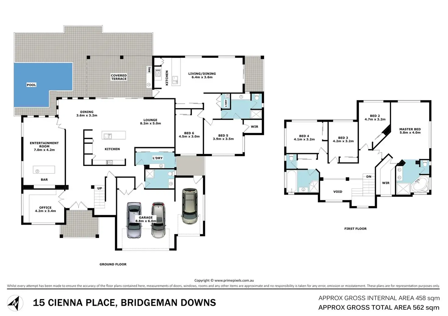 Situated in a very quiet culdesac surrounded by supreme quality properties, this luxurious double storey offers the ultimate in dual living on a very spacious sized block of 800m2. Approximately 560m2+ house size under roof accommodates the impressive specifications.