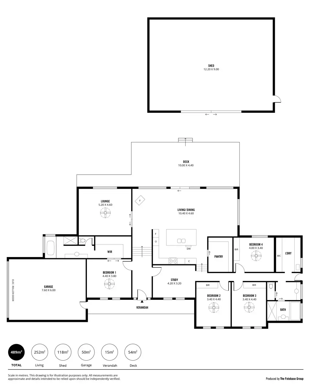 A shed measuring 12m x 9m complete with concrete, power and LED lighting.