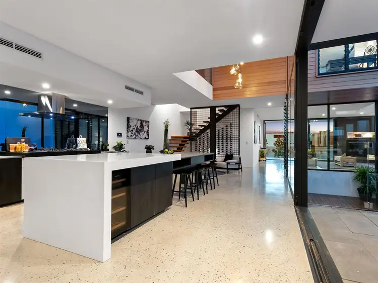 The other direction takes you up to the first floor where you are immediately mesmerized by the beautiful and expansive open plan design where a highly successful merging of the inside to the outside alfresco pool area using commercial grade double glazed windows, louvers and sliding doors as design features, creates a relaxed 'on holidays' atmosphere.