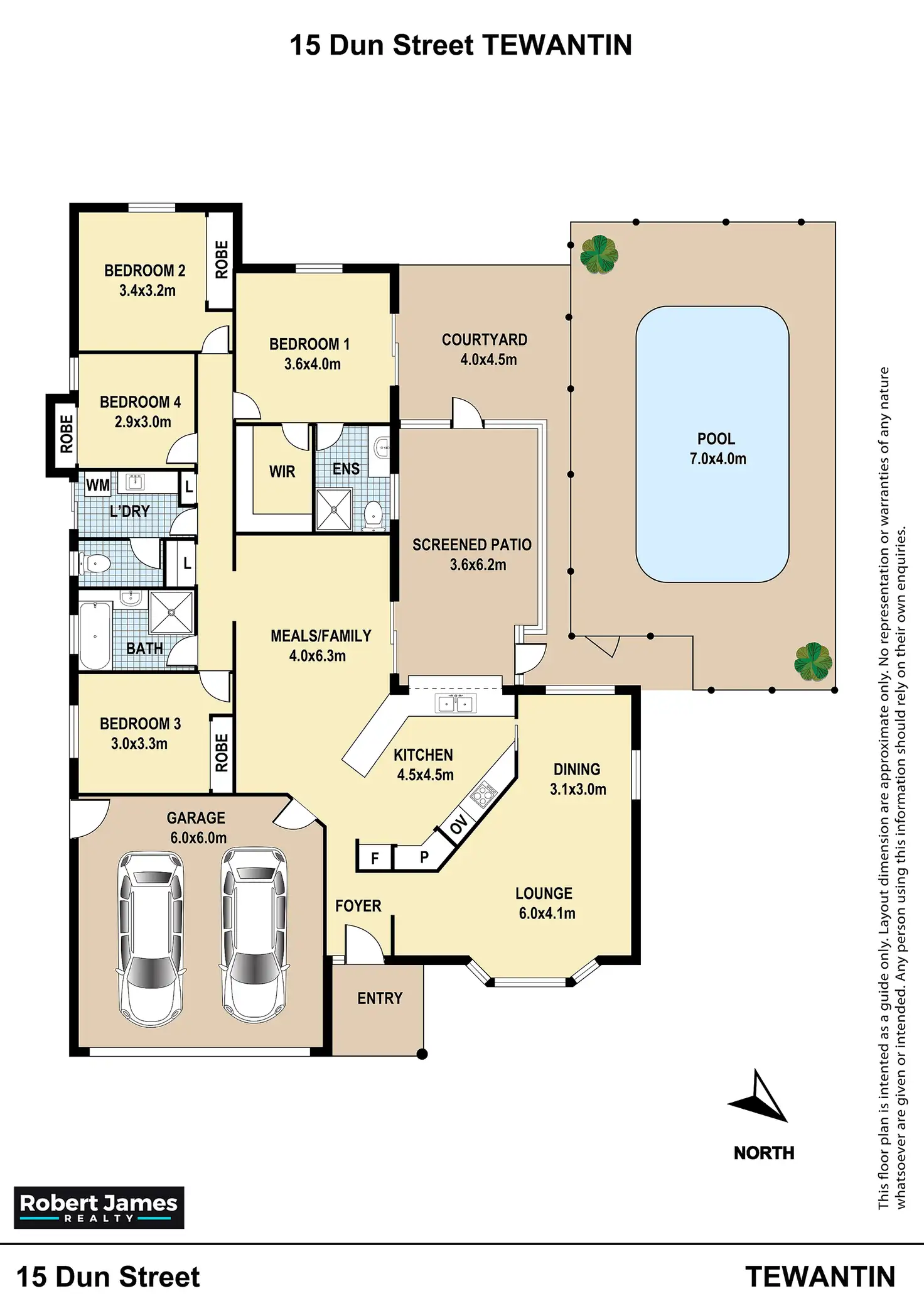 4 generous bedrooms (as per sizes on floor plan attached), main bedroom at back of the home with north/east aspect, reverse cycle air conditioning, ceiling fan, sliding door opens out to the pool/back yard for those mid night swims on a hot balmy night. Roomy ensuite with great storage of drawers, cupboards & shelves behind the mirror. Master bedrooms has a walk-in-robe.