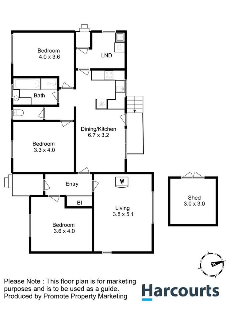 3 Bed • 1 Bath • 3 Car • 615m²