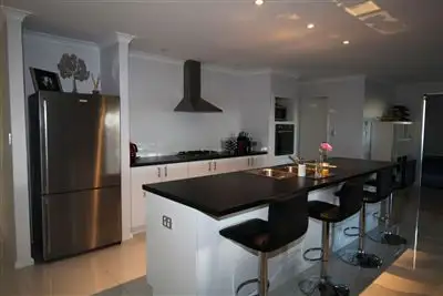 Tenure: Freehold Property condition: New, Excellent Property Type: House Garaging / carparking: Double lock-up, Auto doors (Number of remotes: 2), Off street Construction: Bagged and Brick Flooring: Tiles and Carpet Window coverings: Curtains, Blinds (Roman, Vertical) Electrical: TV points, TV aerial Property features: Safety switch, Smoke alarms Chattels remaining: Blinds, Fixed floor coverings, Light fittings, Stove, TV aerial Kitchen: New, Designer, Modern, Open plan and Breakfast bar Living area: Open plan Main bedroom: Double and Walk-in-robe Bedroom 2: Double and Built-in / wardrobe Bedroom 3: Double and Built-in / wardrobe Bedroom 4: Built-in / wardrobe Additional rooms: Office / study, Media Main bathroom: Bath, Separate shower Laundry: Separate Aspect: East Outdoor living: Entertainment area (Covered, Paved), Garden Fencing: Fully fenced Land contour: Flat Grounds: Backyard access, Tidy, Manicured Sewerage: Mains Locality: Close to schools, Close to shops, Close to transport Legal detailsLand details