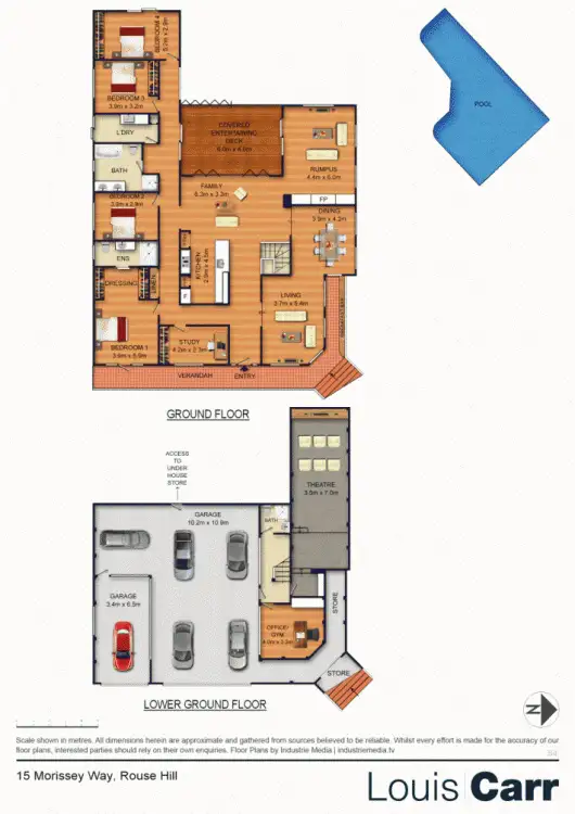The fully equipped, sound proof, 7.1 surround sound Home Cinema is located on the lower level and features projector, screen and raised viewing platform. Also featured on the lower level is a separate home office/gym, full bathroom plus under house storage and wine cellar.