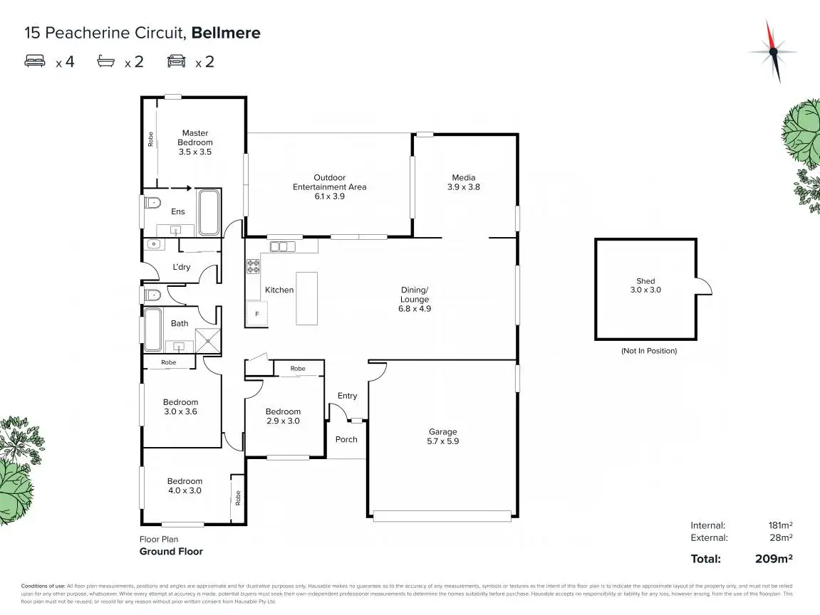 4 Bed • 2 Bath • 4 Car • 600m²