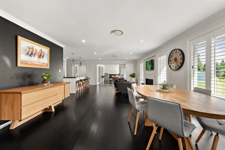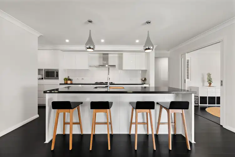 Offering three separate living areas, five-bedroom accommodation and two immaculate bathrooms there is an abundance of space for the large family to stretch out. The property is a superb entertainer with an impressive cabana complete with barbecue, bar fridge, bi-fold shutters and ceiling fans that invites outdoor dining and relaxation while a pool is the perfect spot to cool off on a hot summer's day. This home's long list of impressive credentials extends beyond its inviting interior and entertaining spaces. The landscaped gardens are beautiful with low maintenance succulents, a manicured lawn and a veggie patch that promises a good yield. A gate at the rear allows you to step out, wander down the path and cross the road into the grounds of Bishop Tyrrell Anglican College – yay to easy school drop offs!