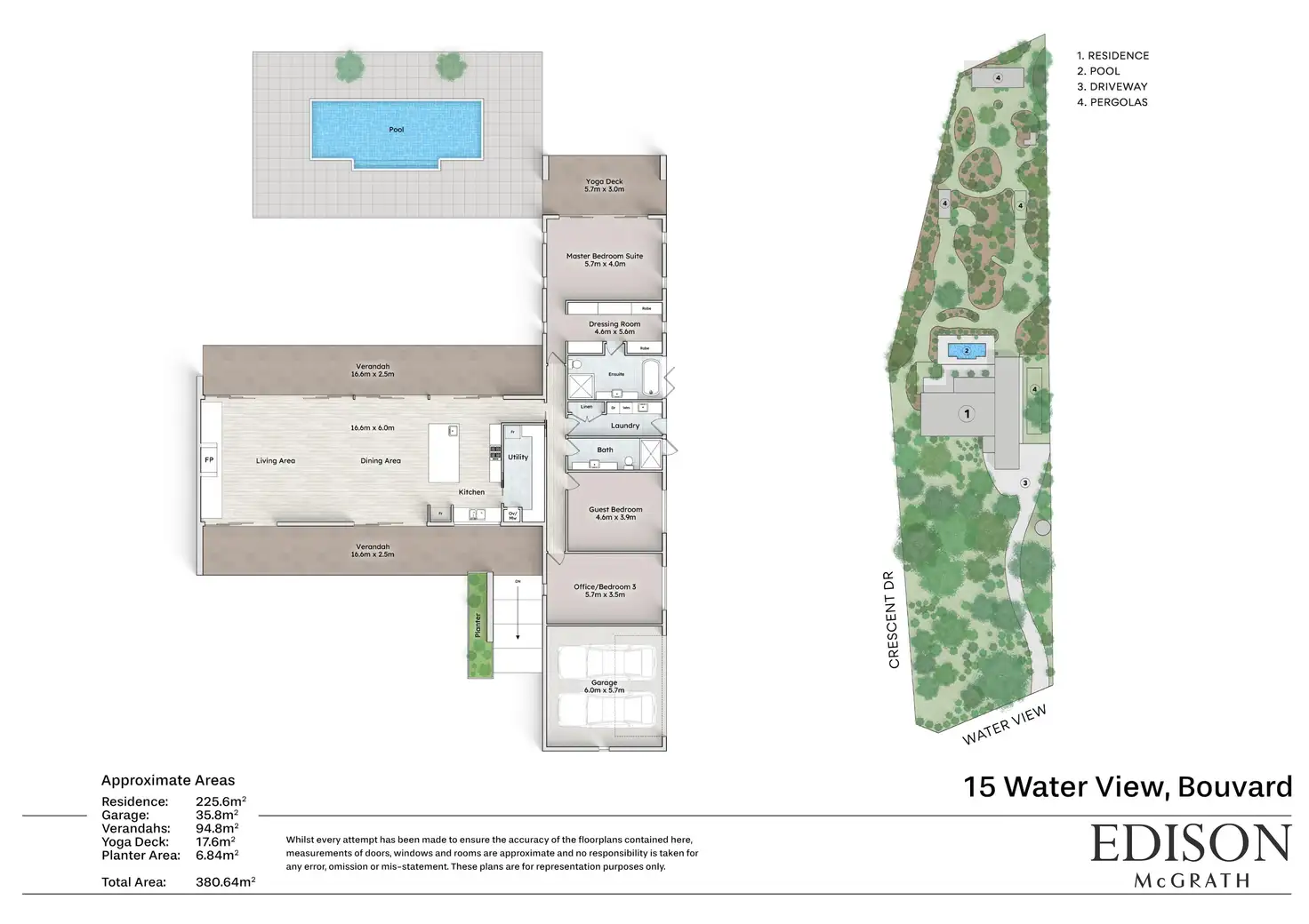 The beautiful manicured landscaped gardens feature four different pergolas leading you down to the water's edge.