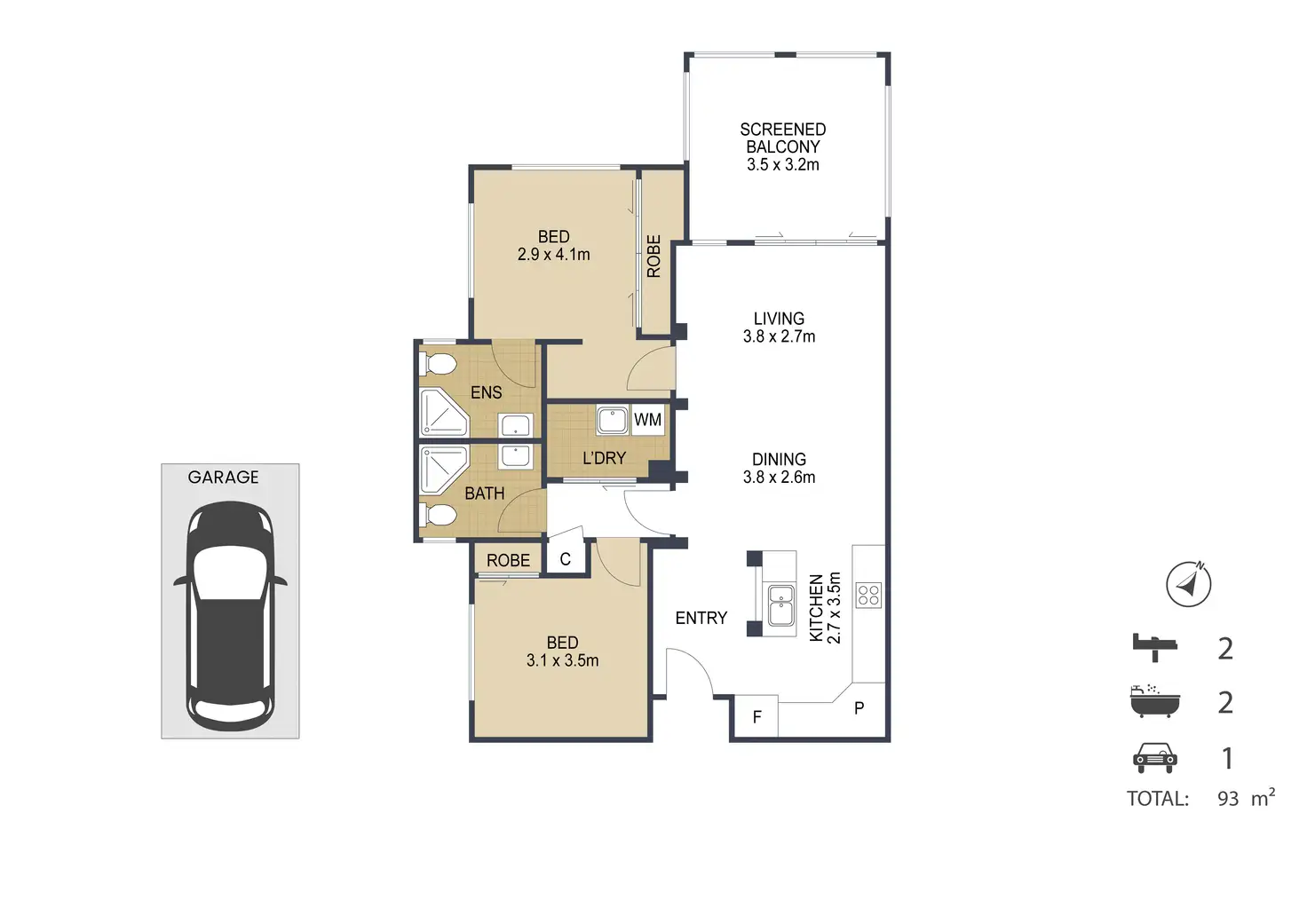 2 Bed • 2 Bath • 1 Car