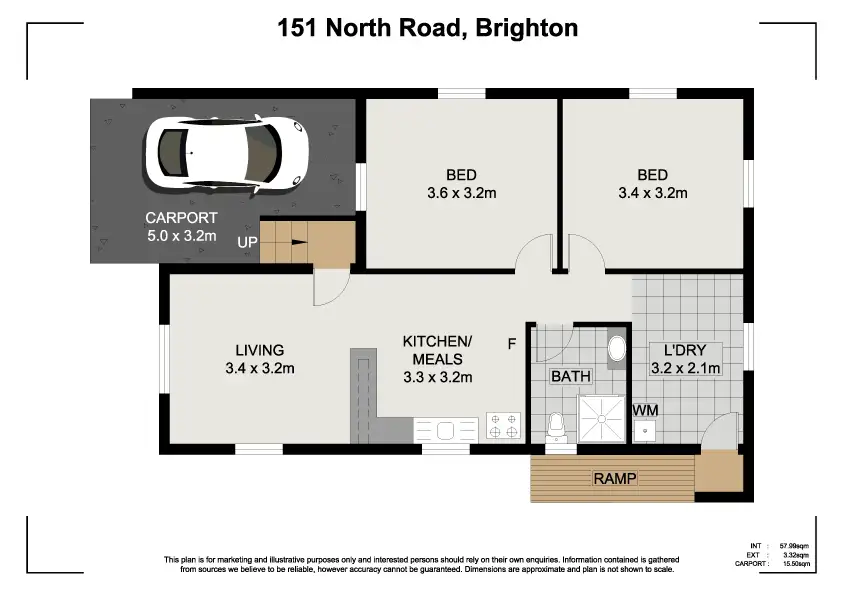 2 Bed • 1 Bath • 1 Car • 405m²