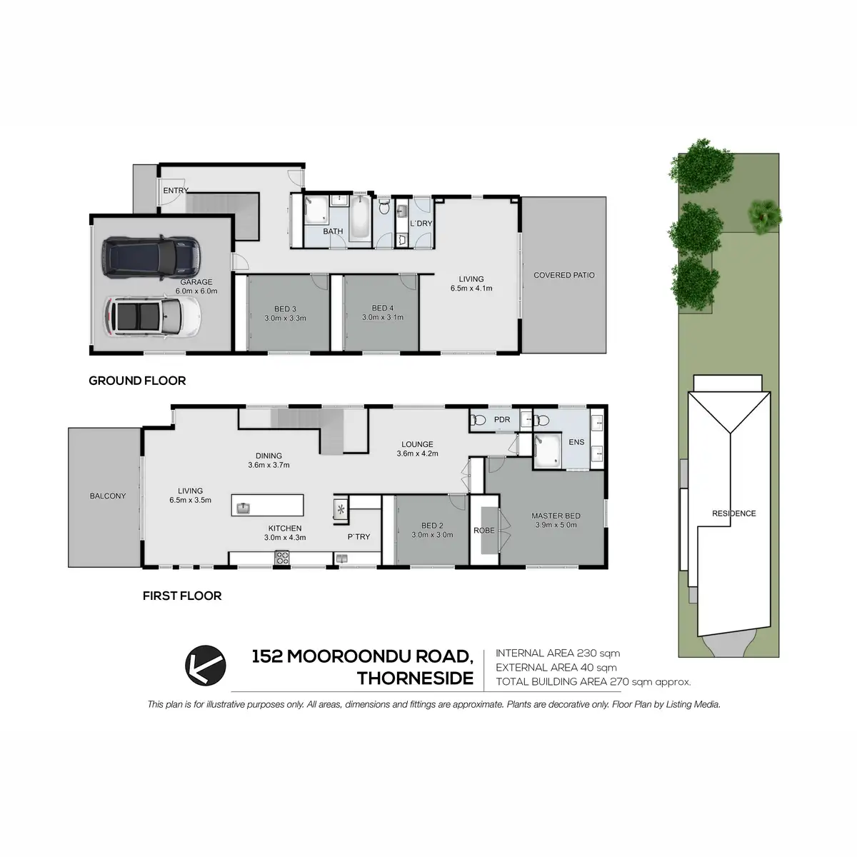 Four bedrooms, two bathrooms, a powder room, laundry, and a double garage finalise the layout. Two bedrooms feature on each floor, and the master suite boasts a private ensuite and views across the big backyard and neighbouring bushland.