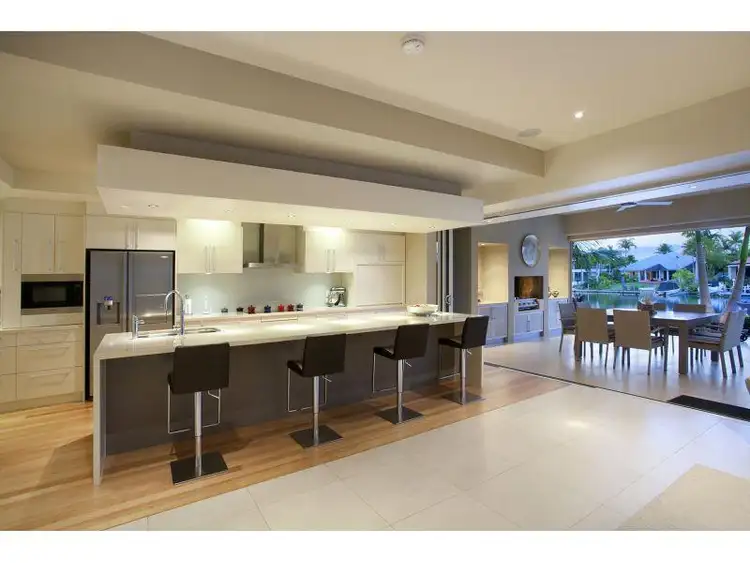 Upstairs via lift or staircase, well separated king size bedrooms, each with their own bathroom offer privacy and seclusion from everyday living. A generous office space allows a work from home environment and the master bedroom with extra large walk in robe and bedroom two feature balconies overlooking the canal.