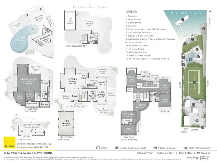The home promises a 6-star resort-inspired lifestyle that includes a championship-size tennis court, riverside pool area with its own white sandy beach, fire pit and self-contained cabana, as well as a sprawling rooftop terrace and bar.