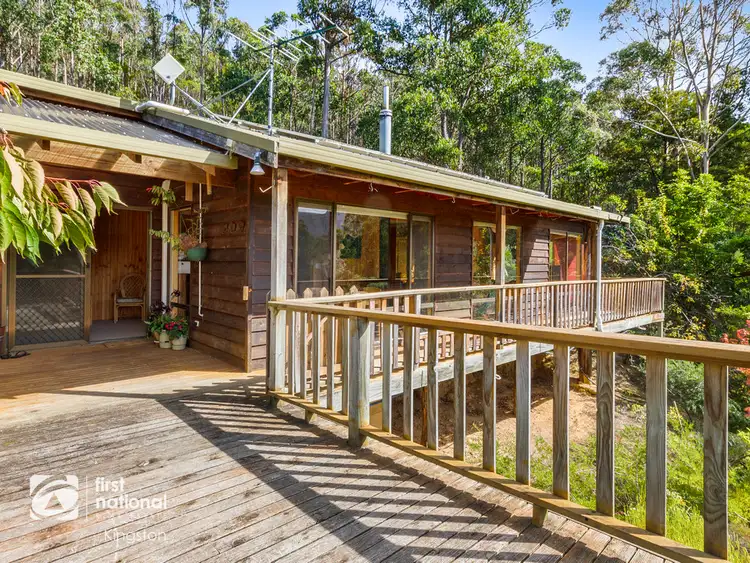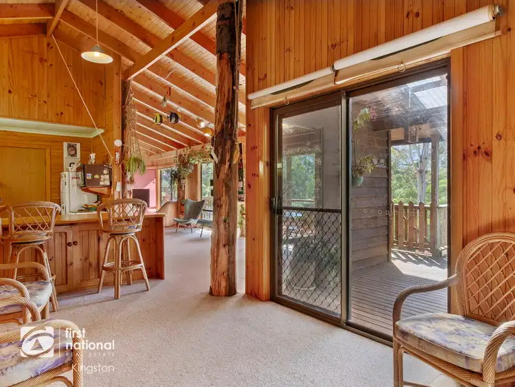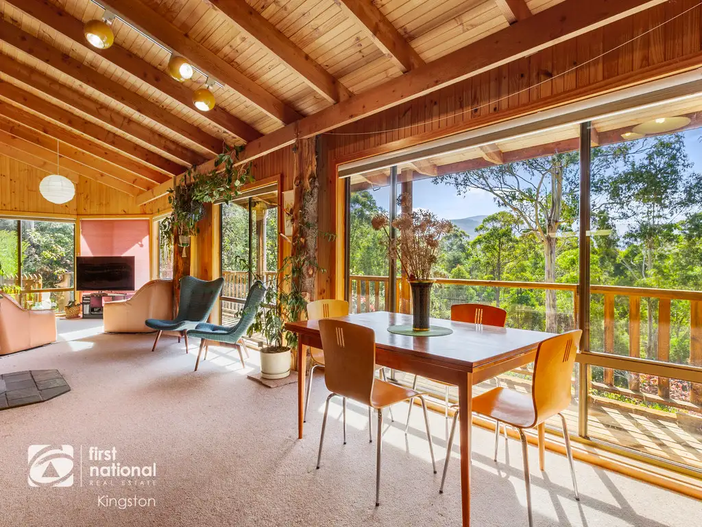 Built from western red cedar with celery top pine uprights and vaulted timber ceilings, this lovely home exudes charm and warmth. Perfectly positioned on the high side of the block, the views extend through the canopy of towering gum trees to Cathedral Rock, Mount Wellington and beyond.