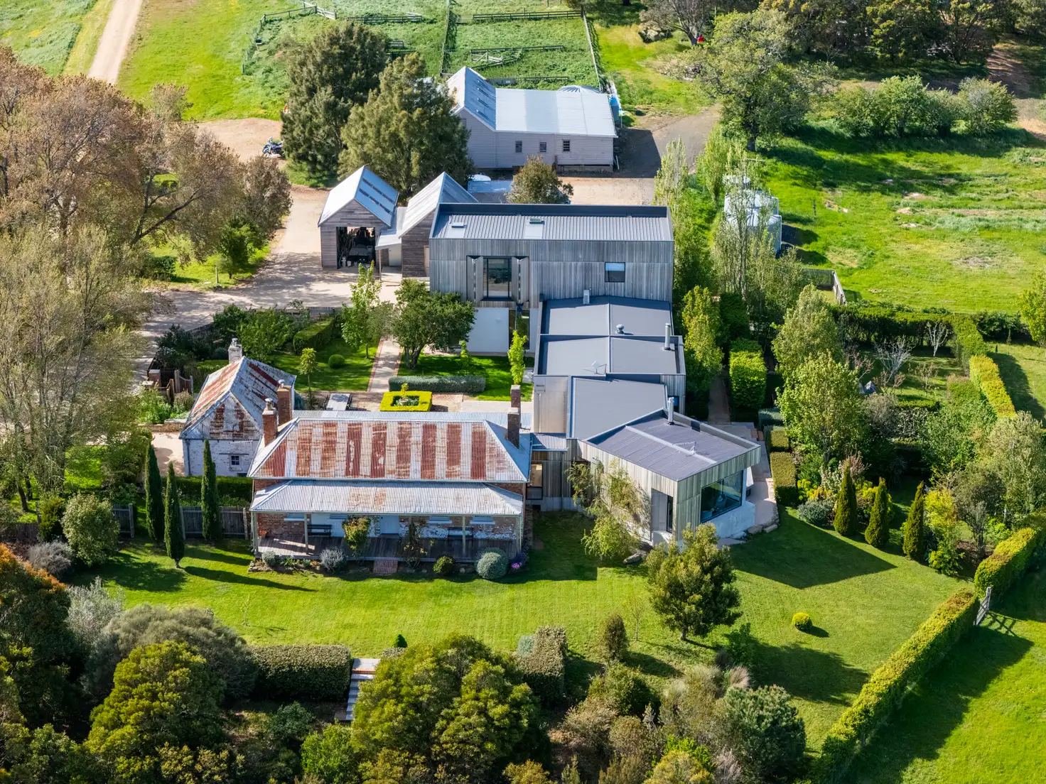Surrounding the homestead are beautifully landscaped gardens, lovingly established by the current owners over two decades. Local sandstone, convict bricks and river cobbles feature throughout the courtyard and garden walls. The grounds include traditional colonial and ornamental plantings, an heirloom stone fruit orchard, raised garden beds, and hazelnut, deciduous and evergreen hedging. Highlights include Napoleonic pear trees, a woodland of heritage nectarines, a pleached hornbeam avenue, espaliered heirloom apples, a rare Indian Horse Chestnut, and a Wollemi Pine gracing the sandstone courtyard.