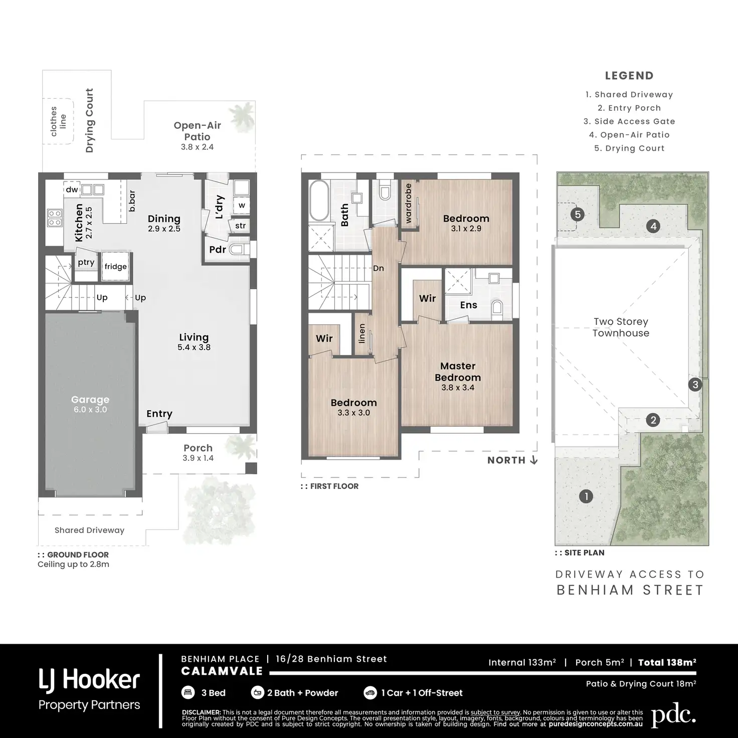 - Fully fenced courtyard with easy-care gardens and open-air terrace, perfect for intimate entertaining.