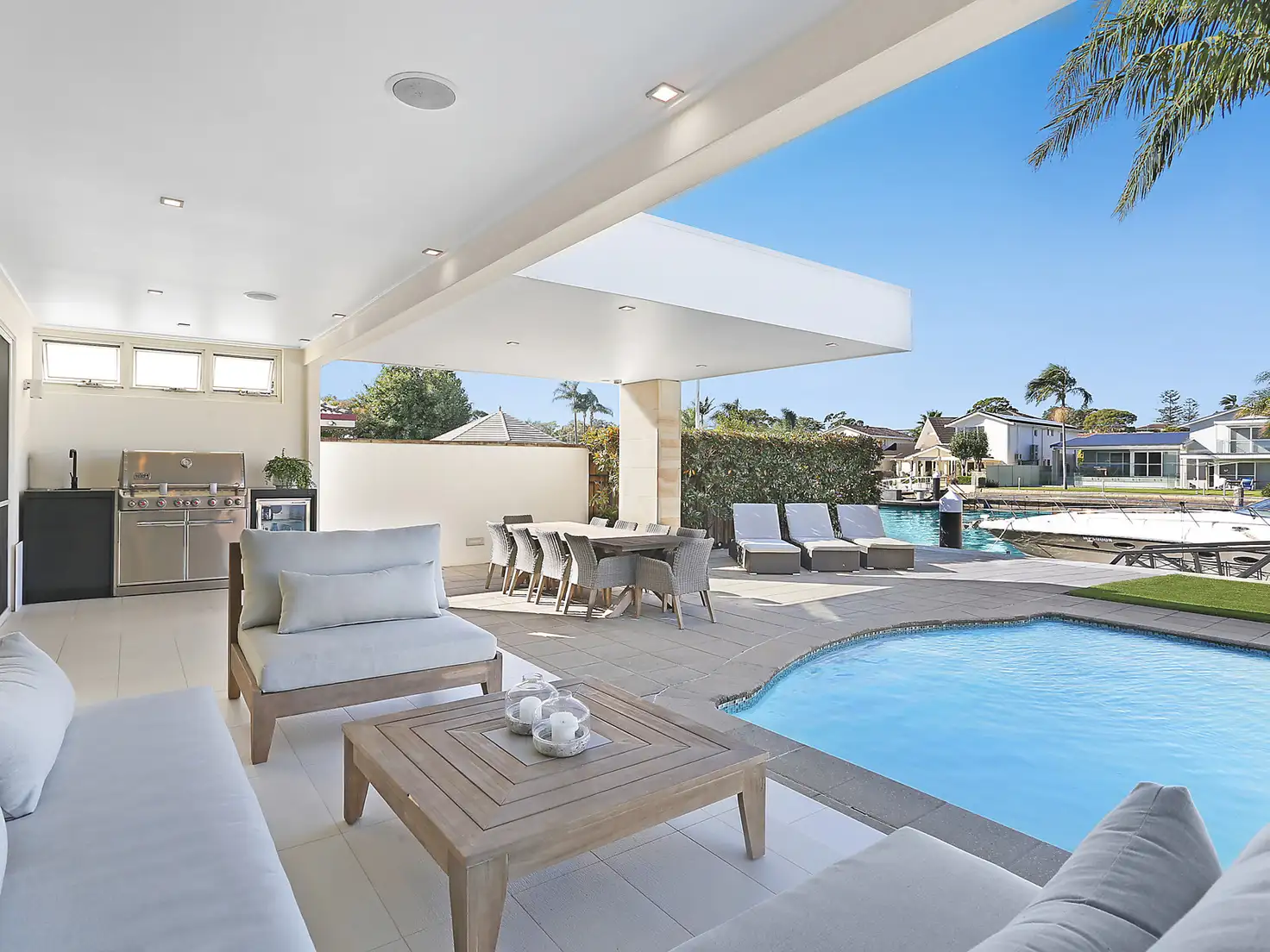 “Stunning waterfront entertaining oasis with pontoon”