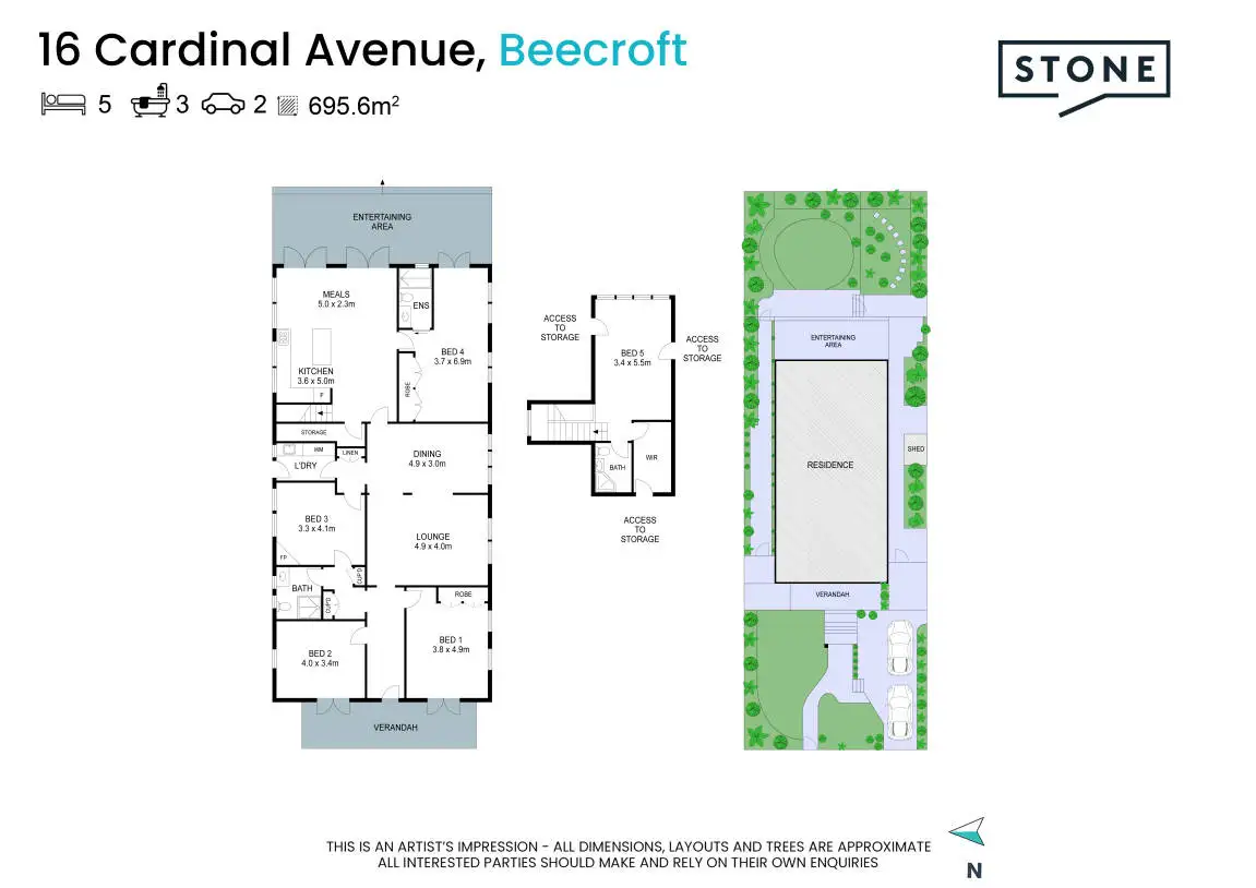 5 Bed • 3 Bath • 2 Car • 695.6m²
