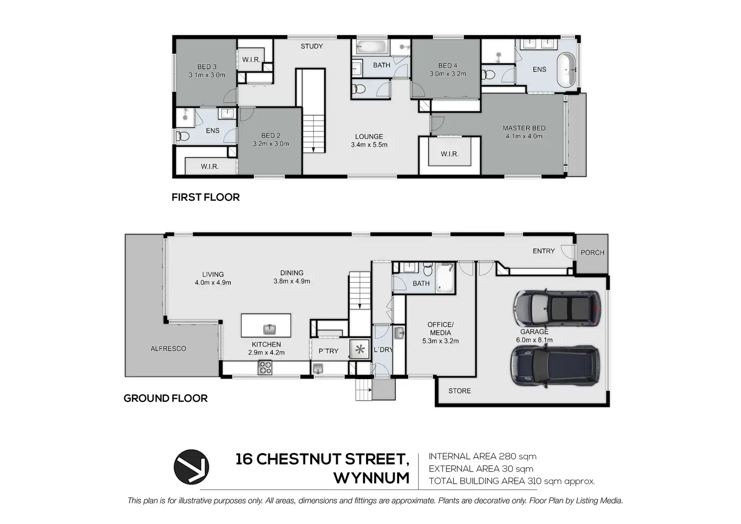 On the property's entry level, a spacious open-plan living and dining area is bathed in natural light. Entertainers and avid cooks alike will appreciate the residence's fantastic kitchen, which displays stainless-steel appliances, a breakfast bar, stone benchtops, pendant lighting, butler's pantry and plentiful cupboard storage. Flowing from the living area is a covered rear alfresco area that leads to a fully fenced grassed rear yard. Finishing the lower level, a guest bedroom/media room, fourth bathroom and laundry.