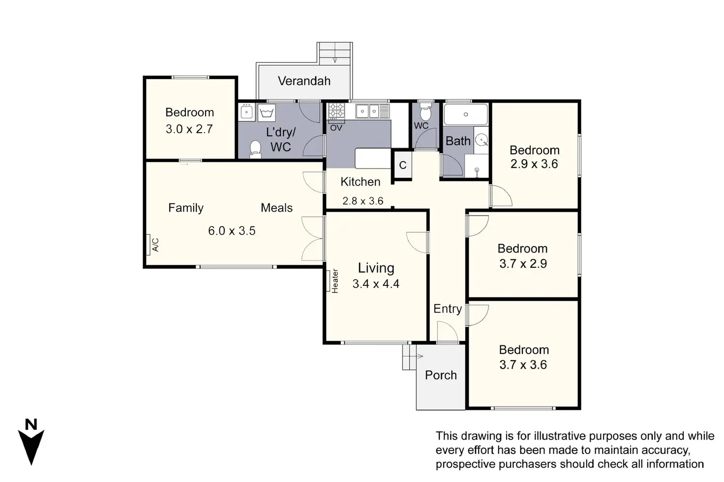 · Four bedrooms, two living spaces, separate WC and one bathroom on a large corner block