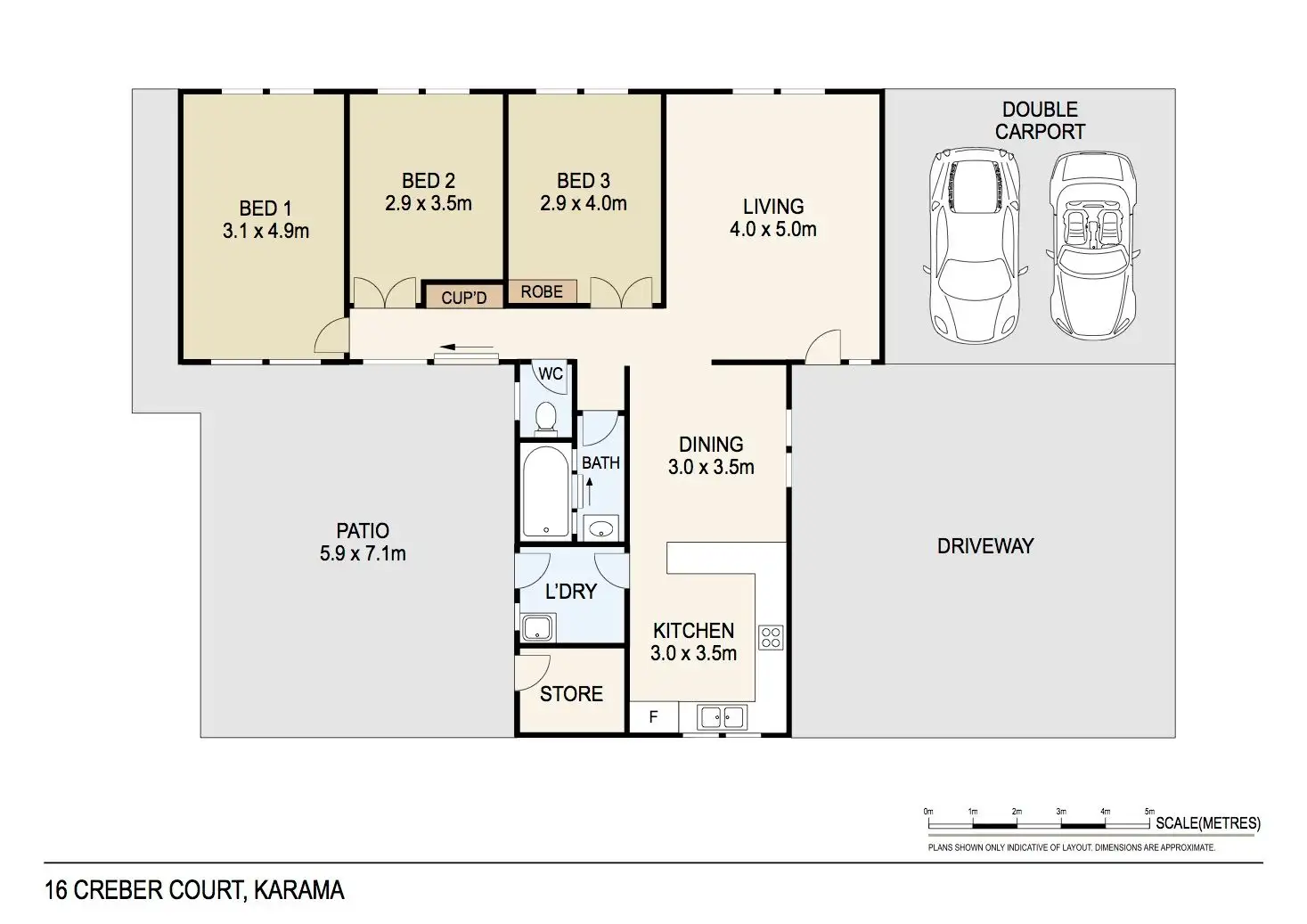 3 Bed • 1 Bath • 2 Car • 800m²